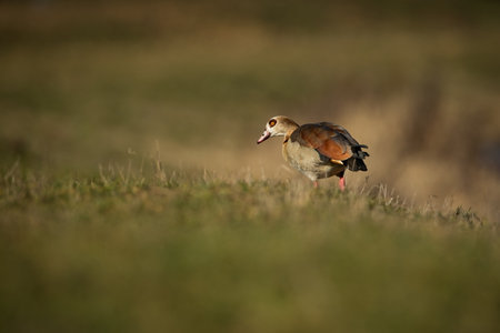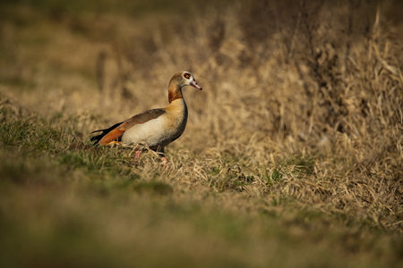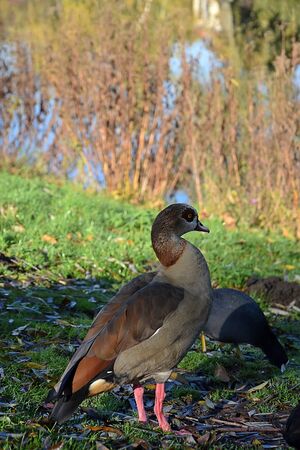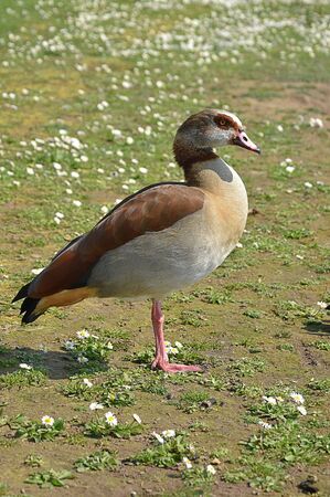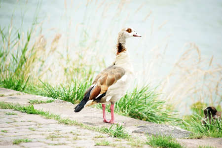 Alopochen aegyptiaca. It comes from Africa. Expanded throughout Europe. The wild nature of the Czech Republic. Free nature. From bird life. Bird on the river and in the grass. Czech Republic. Europe.