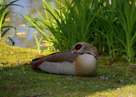 Egyptian Goose (Alopochen aegyptiacus) sitting on a meadow