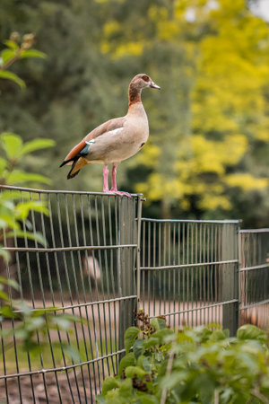 This Nile Goose is standing very securely on a metal fence, looking quietly around the area.
