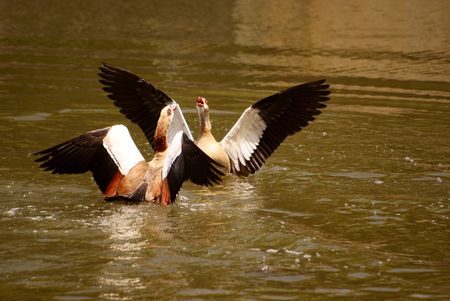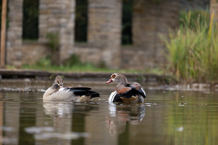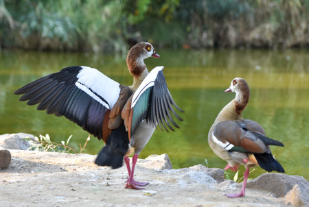 Two Egyptian geese or Alopochen aegyptiacus in nature