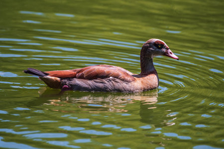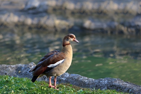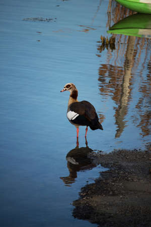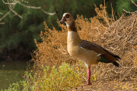 Beautiful Egyptian goose, duck, flew to the Winter Lake in Netanya in Israel