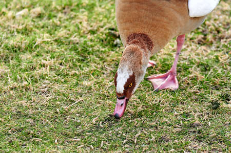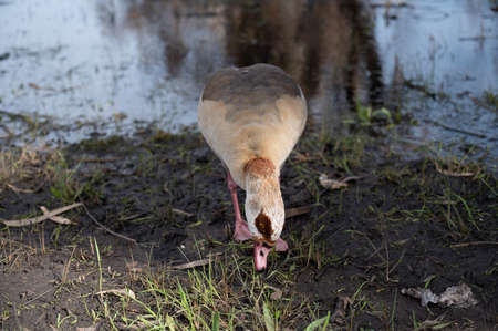 Egyptian goose Alopochen aegyptiacus feeding gras river