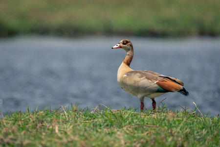 Egyptian Goose (Alopochen aegyptiacus) adult standing near the water.