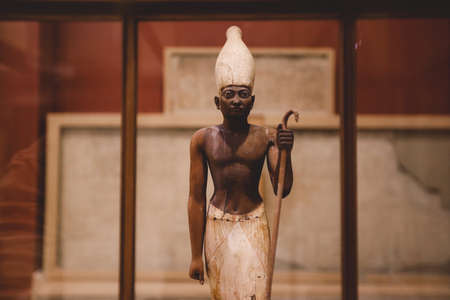 Cairo, Egypt - November 02, 2021: Small Stone Ancient Egyptian figurines and statues in the Cairo Egyptian Museum, the oldest archaeological museum in the Middle East