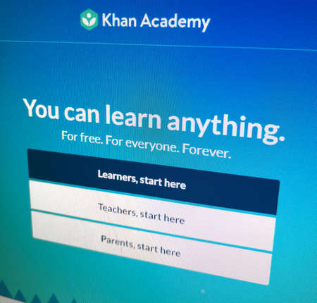 Front page of the Khan Academy website. Free education for students, teachers and parents.