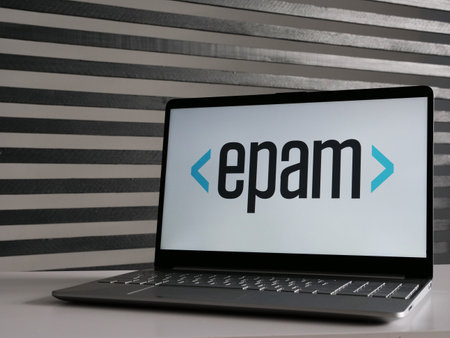 Kyiv, Ukraine - July 03, 2021. EPAM is shown on the photo using the logo of company and text