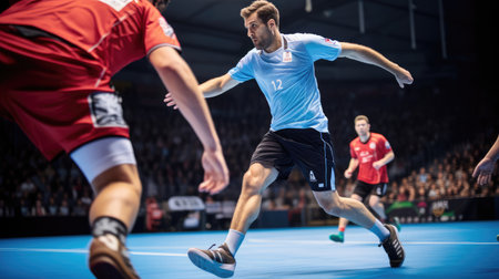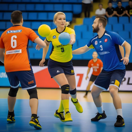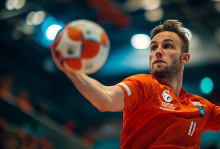 Handball player s strong grip on ball, showcasing control and power in summer olympics sport