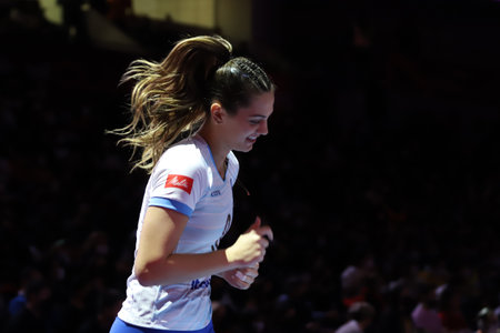 ISTANBUL, TURKIYE - MAY 03, 2025: Sarah Fahr warming up before Vero Volley Milano vs Imoco Volley Conegliano CEV Champions League Volley Final Four Semi Final match in Ulker Sports Arena