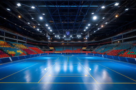 Futsal indoor football and Sports hall floor in a sports hall with various pitch lines