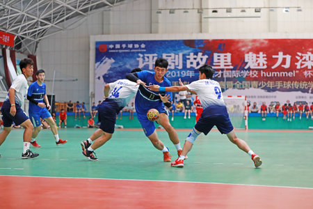Luannan County, China-August 24, 2019: Junior Handball Matches in the Gymnasium, Luannan County, Hebei Province, China