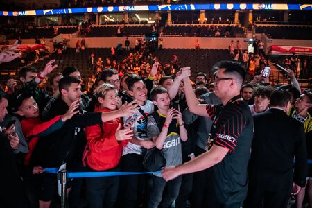 MOSCOW, RUSSIA - 14th SEPTEMBER 2019: esports Counter-Strike: Global Offensive event. Video games fans cheering for their team during the match.