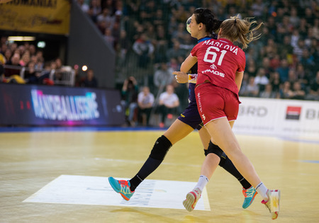 CLUJ NAPOCA, ROMANIA - MARCH 25, 2018: National team of Romania playing handball against Russia during 2018 Women's European Championship Qualification phase 2