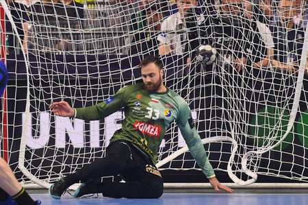 COLOGNE, GERMANY - JUNE 18, 2022: 1 Gonzalo Pérez de Vargas (c). Semifinal THW Kiel - Barca EHF FINAL4 Men