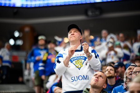 PRAGUE, CZECH REPUBLIC - MAY 20, 2024: The game of IIHF 2024 Ice Hockey World Championship Finland - Denmark at O2 Arena