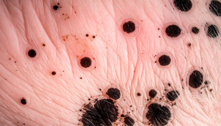 A detailed macro view captures the varied landscape of human skin, highlighting multiple nevi and moles. This image serves as a powerful visual for dermatology, skin cancer awareness, and the importance of regular health screenings.