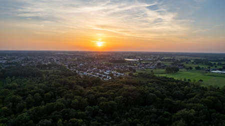 Aerial view of Estate domain in agricultural landscape at sunset in Groningen Netherlands