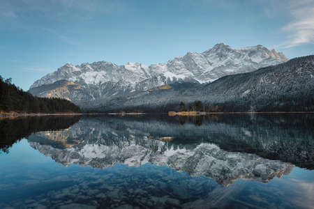Reflection of Lake Eibsee infront of Zugspitze, Bavaria, Germany