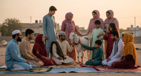 Eid al-Adha Celebration, the Moment of Sacrificial Animal Slaughter, happy