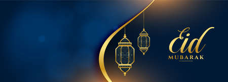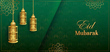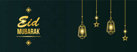eid mubarak festival banner with lamps decoration
