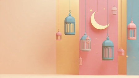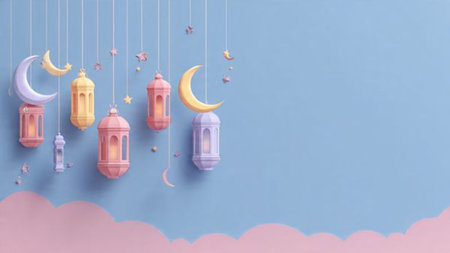 Ramadan background featuring traditional lanterns and soft warm lighting.