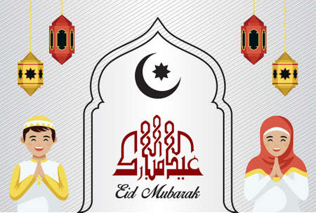 Eid al-Fitr Mubarak vector illustration. suitable for greeting card, poster and banner