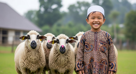 Eid al-Adha Celebration, the Moment of Sacrificial Animal Slaughter, happy