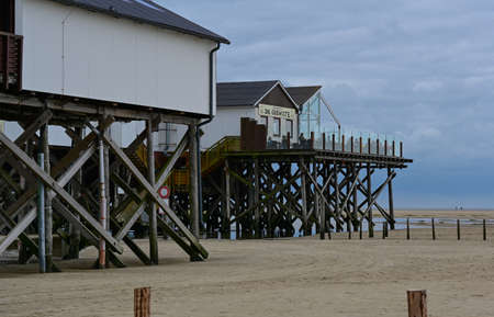 Stilt houses the wooden huts on stilts on the North Sea in Sankt Peter-Ording