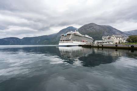 EIDFJORD, NORWAY - 21 SEPTEMBER 2017: Viking Star cruise ship docked at the quayside in Eidfjord in Norway