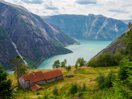 beautiful norwegian landscape with fjord in Odda, tourist places in Norway, view for postcard and wallpaper