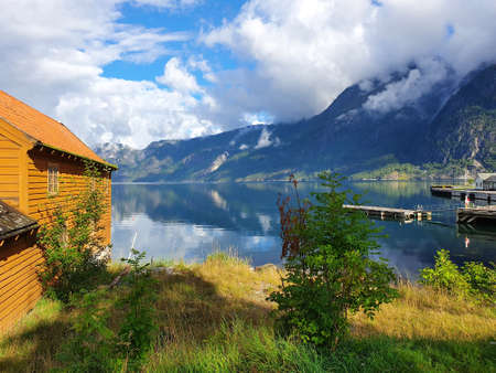 Wooden pier of Eidfjord, town on the Sognefjord in Norway