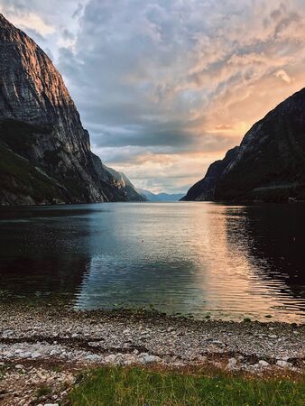 Beautiful Sunset at Lysebotn Lysefjord, Norway