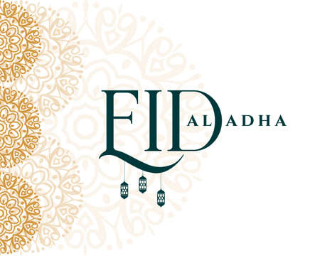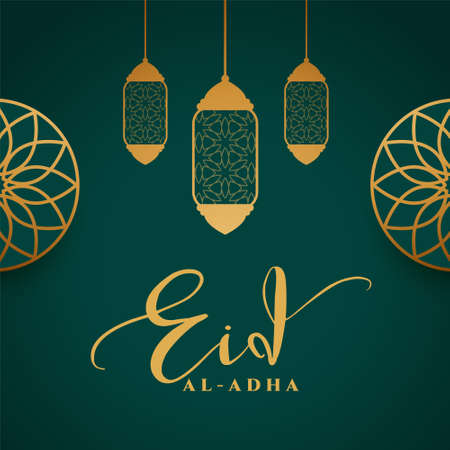 muslim eid al adha decorative wishes greeting with arabic style lamp design