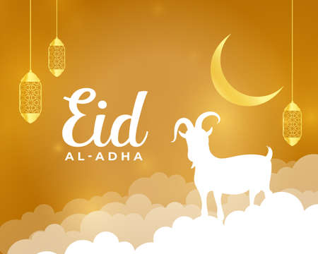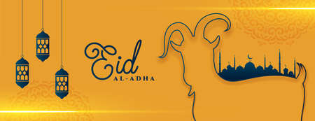 eid al adha celebration islamic fanoos with goat and mosque banner