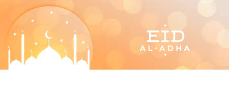 eid al adha mubarak islamic festival with mosque bokeh banner