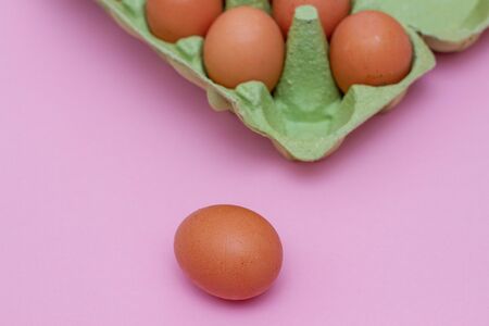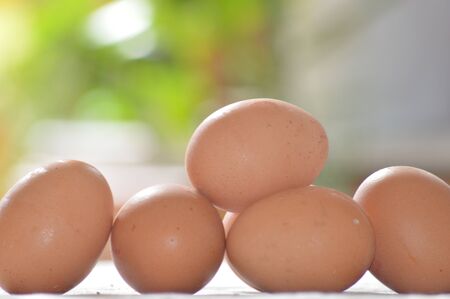 Easter concept. Brown-shelled farm eggs row. Organic natural eco food. High quality photo