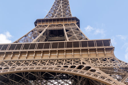 Eiffel Tower structure and elevator view from inside, Paris, France