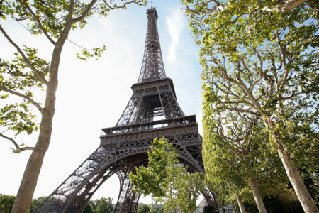 Wide View of Eiffel Tower from the Ground, Paris, France