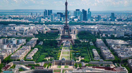 Generative AI : Panoramic aerial view of the Eiffel Tower and Champ de Mars in Paris France