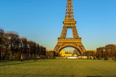Eiffel Tower view from Champ de Mars. Paris, France, Winter