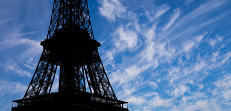 Eiffel Tower against the background of a beautiful sky with clouds. Paris, France