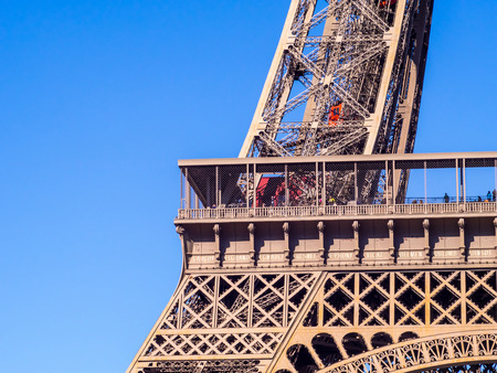 PARIS - SEPTEMBER 28: Close up for some part of Eiffel tower with clear blue sky in Paris, France, was taken on September 28, 2015.