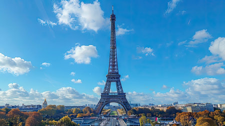 Eiffel tower in Paris wide angle shot