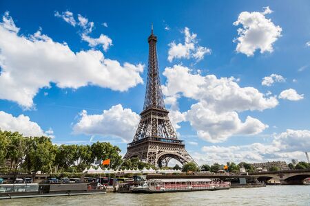 Seine and Eiffel tower in a beautiful summer day in Paris
