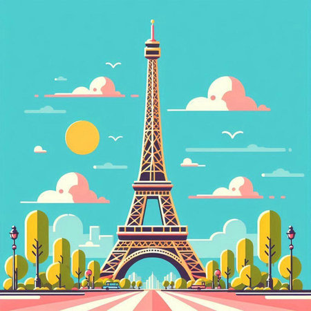 Eiffel Tower in Paris, France. Vector illustration in flat style