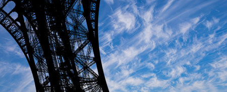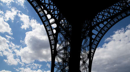 Detail of truss of Eiffel Tower bottom view and blue sky