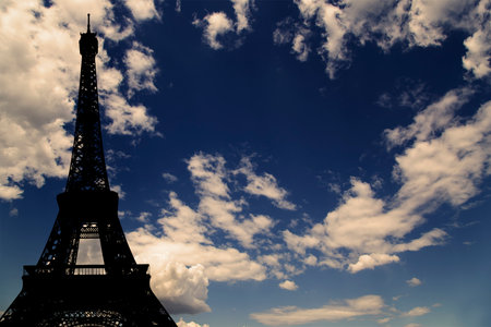Eiffel Tower and its blue background in Paris, France