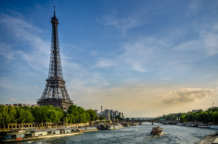 The Eiffel Tower along the Seine River in Paris, France.