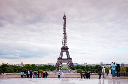 June 9, 2011 Paris, France : Tourist enjoyed view of Eiffel tower from Plac du Trocadero