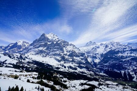Eiger, Swiss Alps - snow capped mountains and deep valleys, stunning view, breath-taking panorama