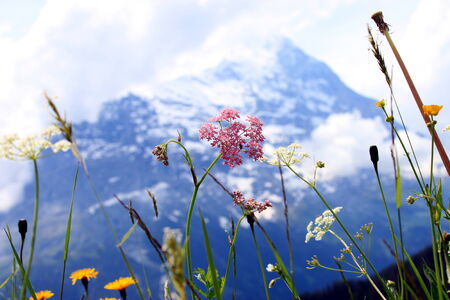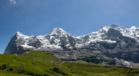 beautiful summer mountain landscape with views of Eiger peak. Bernese Oberland, Switzerland.